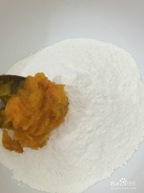将南瓜泥加入糯米粉中