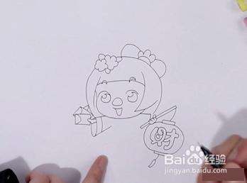 22、继续画出她的两只手,一只手上拿着红包,另外一只手上提着一盏灯笼。