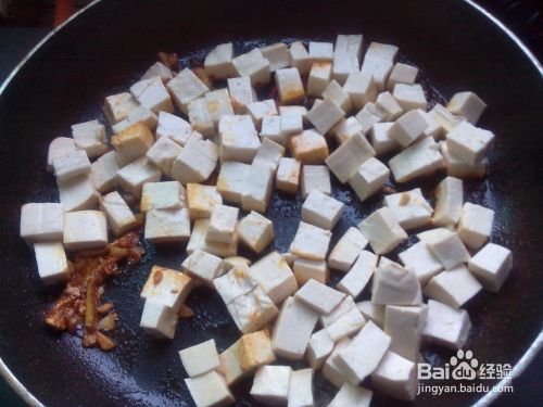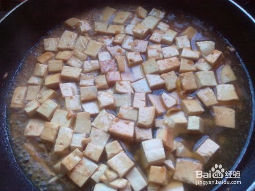 放豆腐。然后把切好豆腐块倒入锅内,轻轻的搅拌一下。
