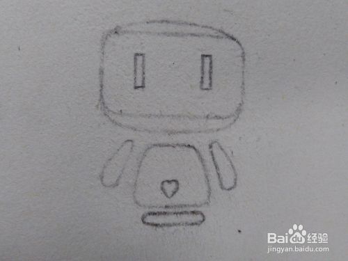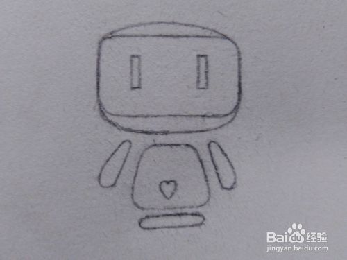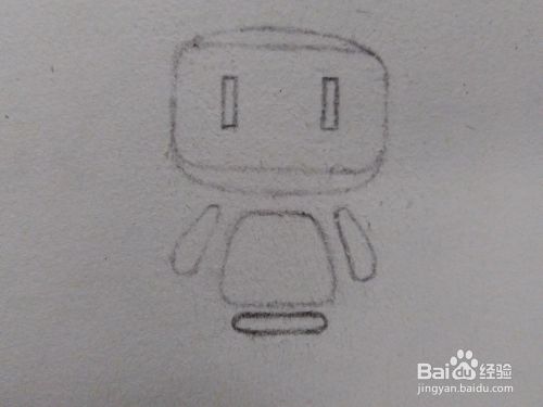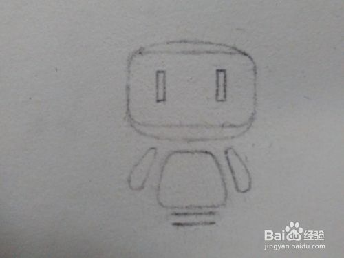 在完成上部后用自动铅笔把小度的身体描明吧!
