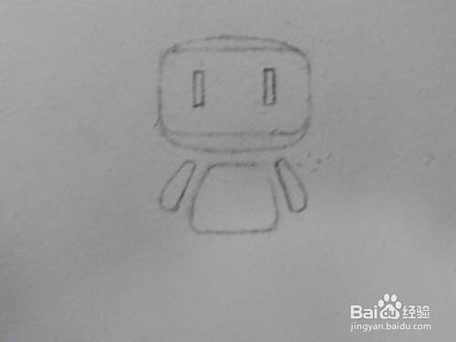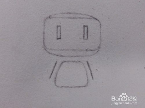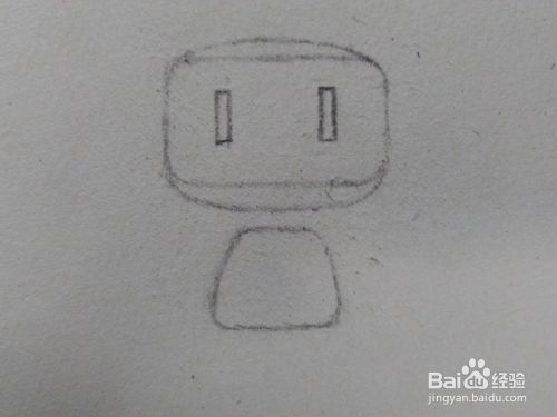 在头部下面画一个等腰梯形(注意梯形的上底与下底都不能比小度的脑袋长)