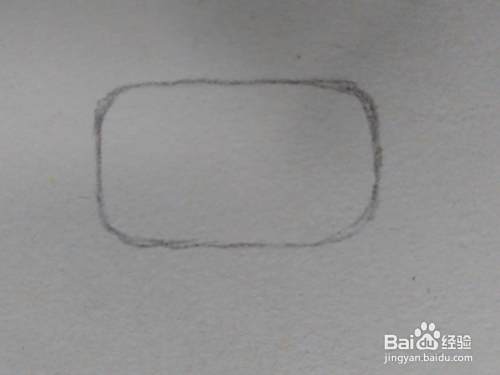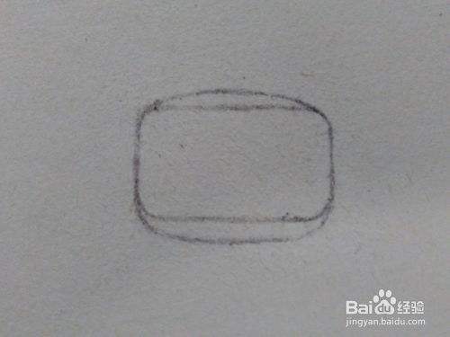 在这个圆滑的“长方形”上方多加一条中部鼓起的线,下方多加一条中部鼓起的线(注意下方的线弯折度更缓)