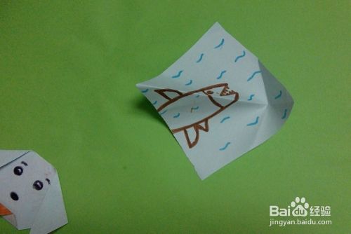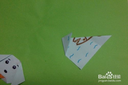 打开材料,把折的一角反过来,做小狗的尾巴。