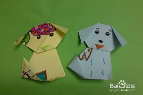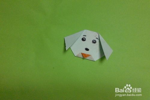 下面两角,再回折。如果是单色纸,可以涂一下颜色更好看一些。给小狗狗画上五官。头部就折好了。