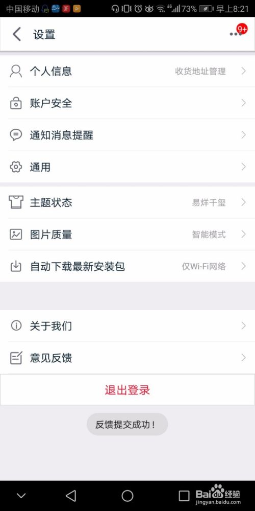 设置功能里可以进行安全设置、支付设置和主题设置等常用操作,点击进入最下方的意见反馈。