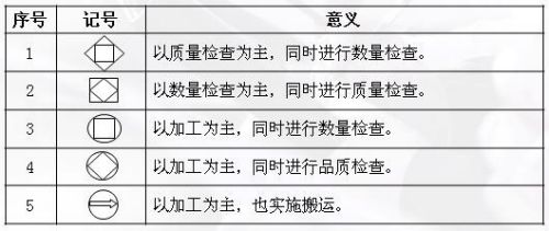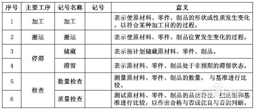 在流程程序图中,为使分析过程简化并易于理解,把生产过程中常见的一些活动以特定的记号来表示。