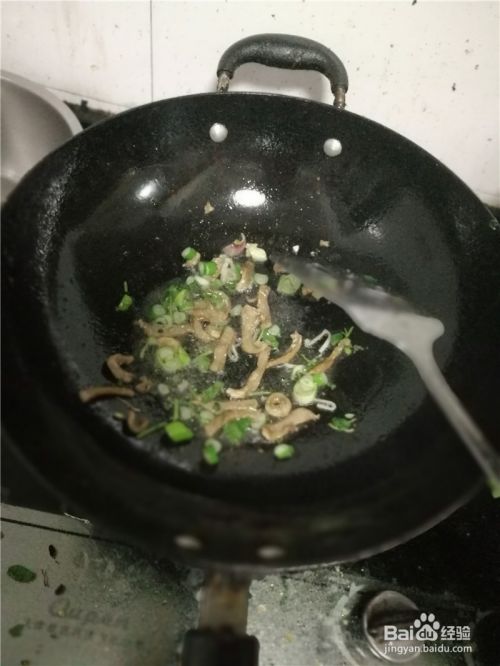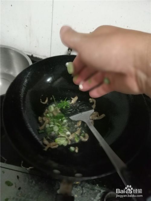 撒入葱沫继续翻炒出香味