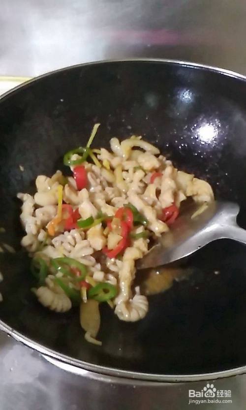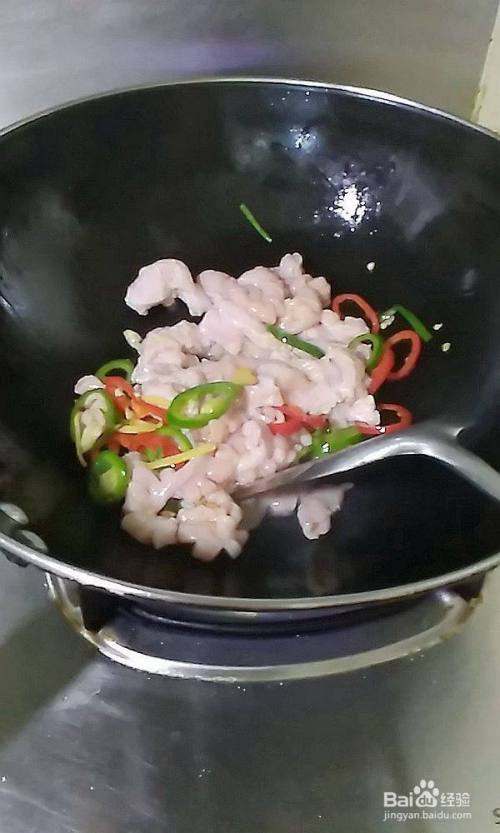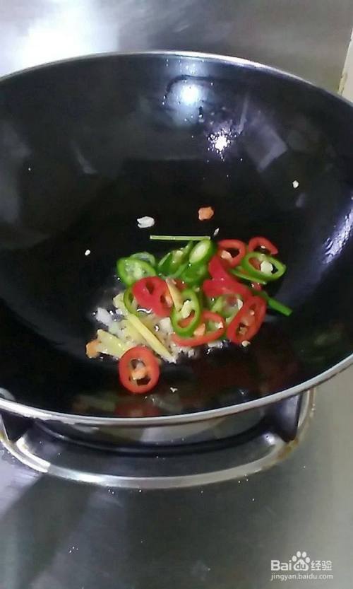 锅里下油,下蒜蓉、姜丝、辣椒爆香