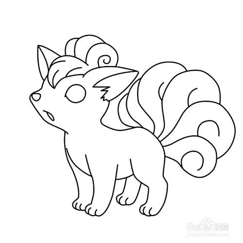 最后再给Q版神奇宝贝六尾画好展开的尾巴就完成了。
