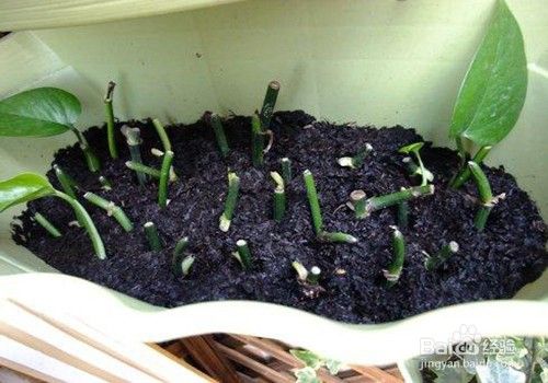插枝。插枝前,用盆喷出基质,然后将插穗插入土壤的一半深度,保持基质微湿,15-20天后扎根。