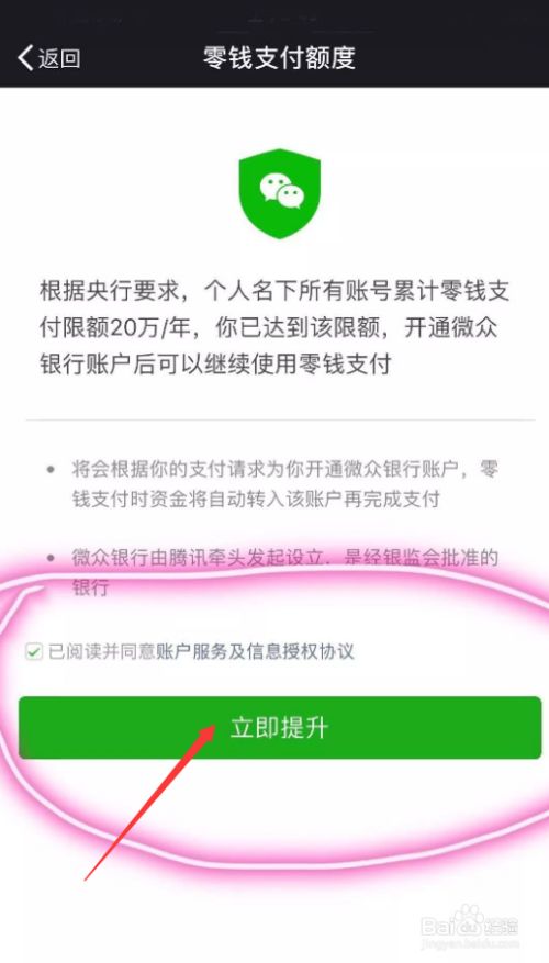 进入到零钱支付额度界面中,点击下方的立即提升。