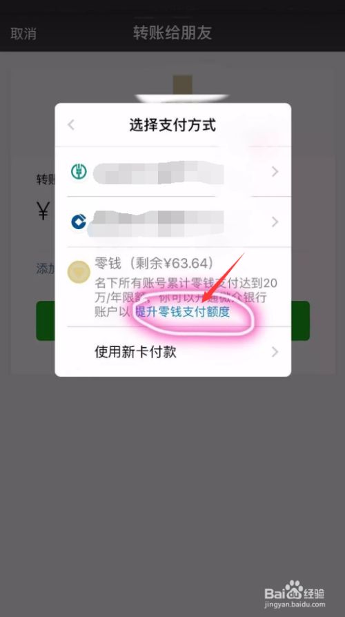 在弹出的支付方窗口中,选择提升零钱支付额度。
