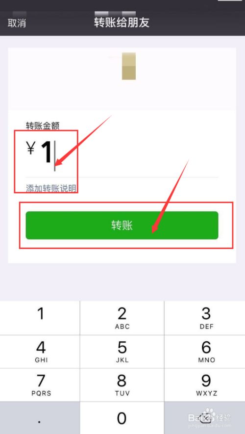 进入到转账页面后,任意填入转账金额后,点击转账。