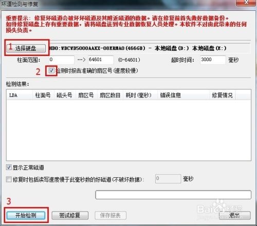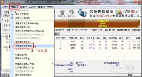 先使用DiskGenius工具检测硬盘坏道,全盘扫描。按图操作。
