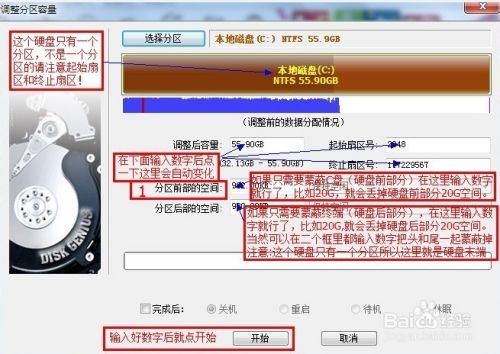右键点击本地硬盘,在弹出菜单中,选择调整分区大小,在分区前部的空间后的框里输入数字,根据DiskGenius检测到的坏道具体位置,如果需要蒙蔽掉15G。就输入15G,随便点一下,再看起始扇区号和调整后容量都自动变化了。点开始吧。
