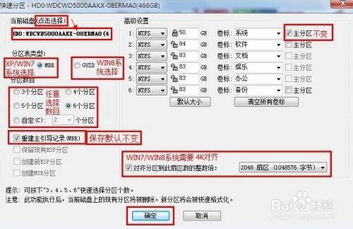 点击快速分区,硬盘里所有的数据就都没有啦,需要数据的请别使用快速分区。按图操作吧。确定后点保存更改。就自动开始分区格式化了。完成后就可以安装系统了。