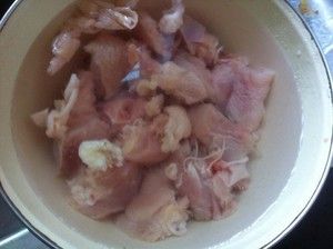 油锅烧热放入生姜大蒜鸡腿肉翻炒