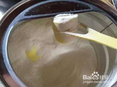 然后再加入奶粉,奶粉的量要根据加入水的量,每30ml水加入一平勺奶粉;