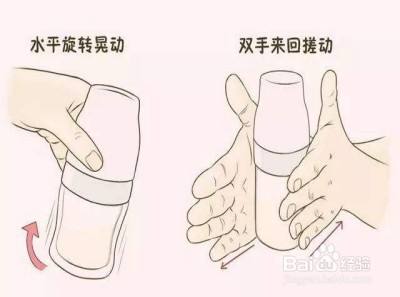 轻轻的晃动奶瓶(不要上下晃动哦),让奶粉冲开,冲好的奶粉要均匀,不要结块。
