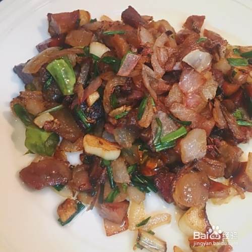倒入香肠,加入一点料酒和蚝油,(我没有放盐,香肠已经咸了)翻炒4-5分钟。