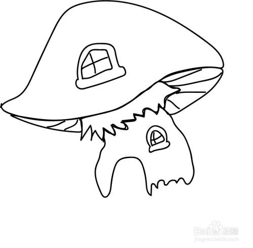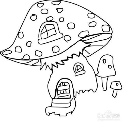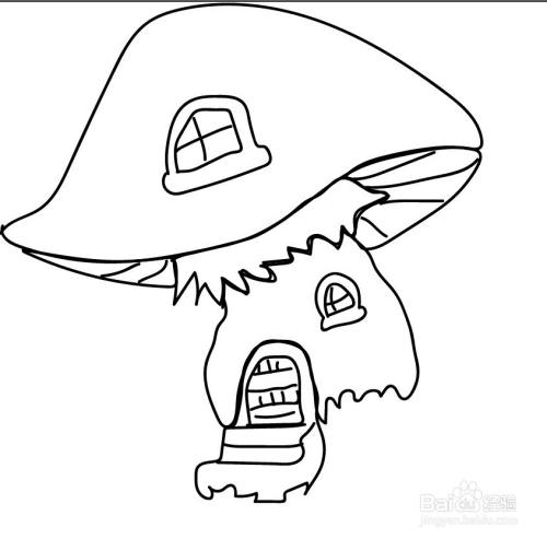 使用铅笔画出蘑菇屋的屋顶与窗户。