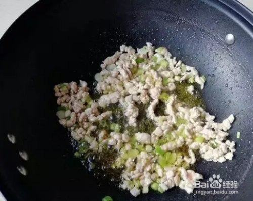 锅加油烧热,下入葱花,姜末,蒜片爆香,下入肉末翻炒至肉末颜色变白,下入黄豆酱炒出酱香味。