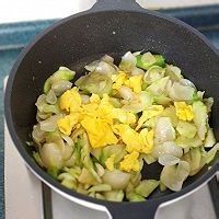 再放入炒好的鸡蛋,放入适量盐进行调味即可。