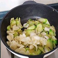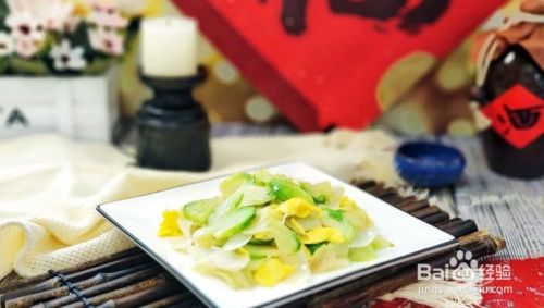 鸡蛋打散,百合洗净,拆散,儿菜洗净切薄片。