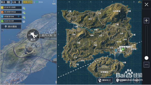 选择合理的跳伞时间,近尽量选择靠近建筑物的地点降落,这样可以快速获得装备,如下图所示