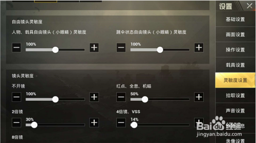 设置合理的移动瞄准操作灵敏度,可以提高射击精度和反应速度,如下图所示