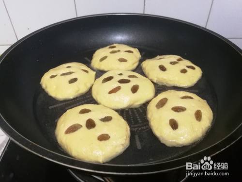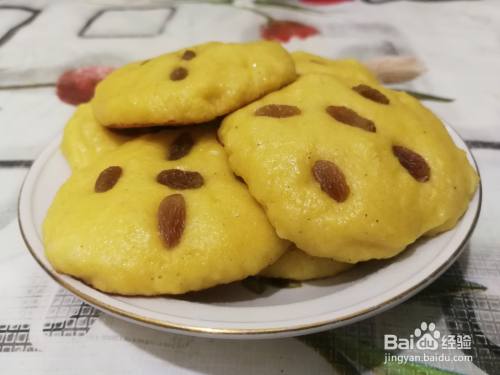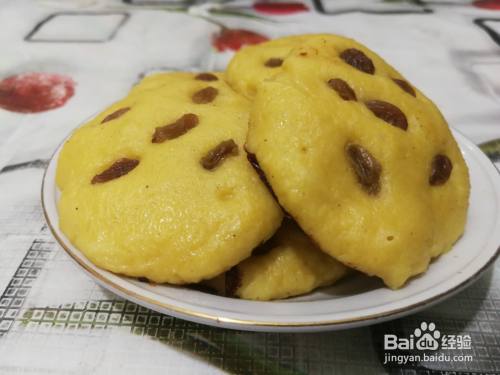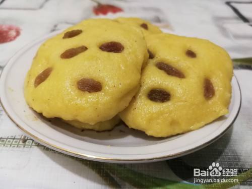 今天用玉米面,面粉做玉米饼,再放点葡萄干,松软香甜。