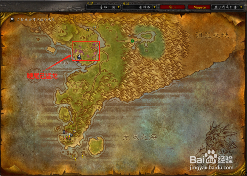 鞭尾迅猛龙位于荆棘谷格罗姆高营地附近,具体位置如图所示。
