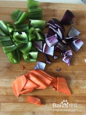 万能配菜:青椒,洋葱,胡萝卜切片,实际上每种没用上一个,