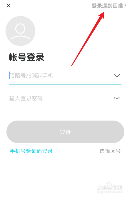 1、打开陌陌登录页面,点击【登录遇到困难】。
