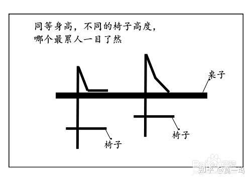 事实上,解决颈椎病和腰椎病不是没有简单的方法,一把椅子就搞定了。作为打工人都会发现公司的桌椅都是标配的,为什么经常坐办公室的会出现颈椎病,腰椎病?下面我给大家画个简图就知道了。