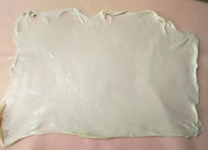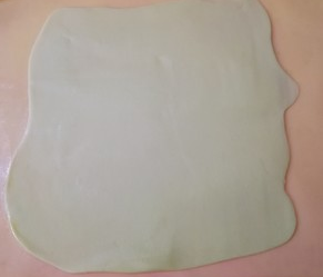第二天拿出来,然后用擀面杖把面片向四周擀开