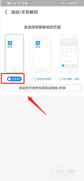 进入指纹、手势解锁页面,勾选无须保护,设置成功。
