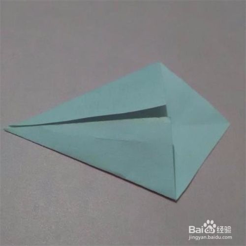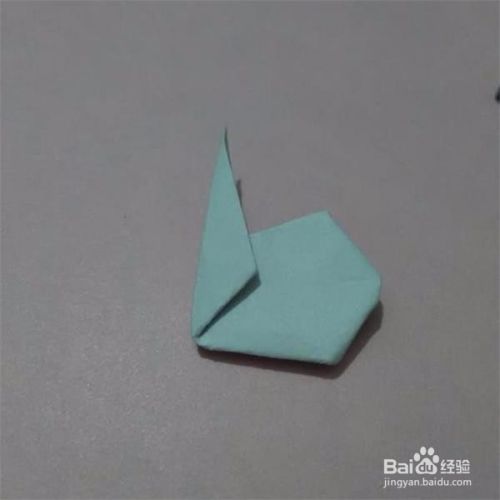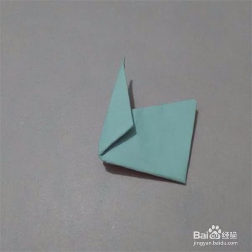 将左侧的角从外侧向上折,折成兔子耳朵。