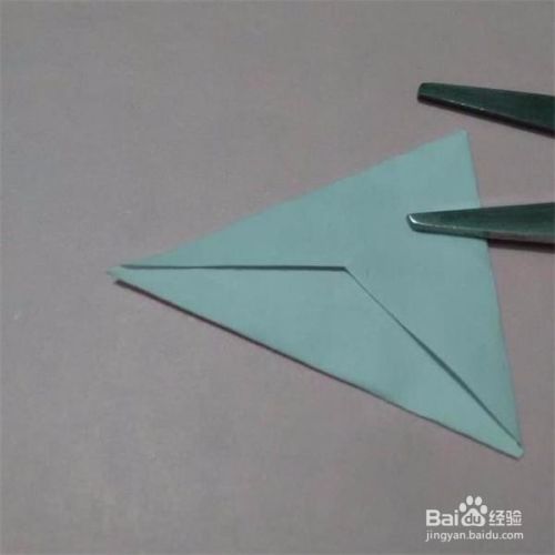 最后,用剪刀将兔子耳朵中间剪开,然后把两只耳朵交错开,小兔子就折完了。