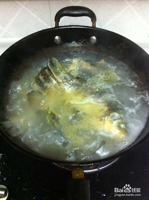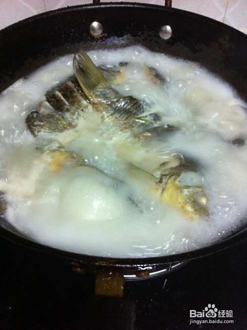 煎的同时烧一壶开水,一定要烧开哦!为什么鱼能煮出奶白色的汤汁全靠开水!