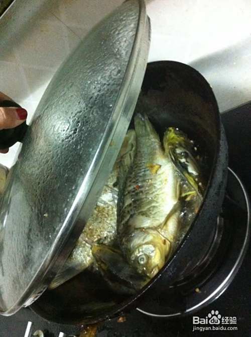煎好后加入半壶开水,水量以淹没鱼为准,剩下半壶一会再用。