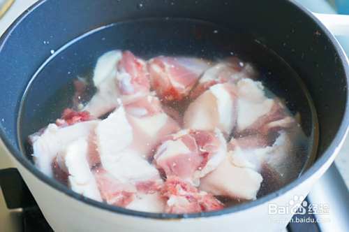 锅中放入适量的凉水,把切好的鸭腿凉水下锅