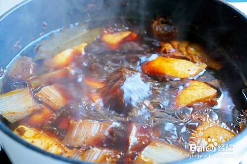 鸭肉软烂后收汁出锅。汁不要收得过干,如果浸泡一会儿味道更好