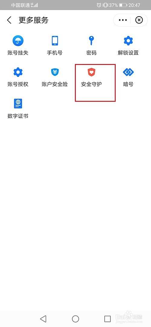 第三步进去更多服务之后,然后点击安全守护