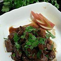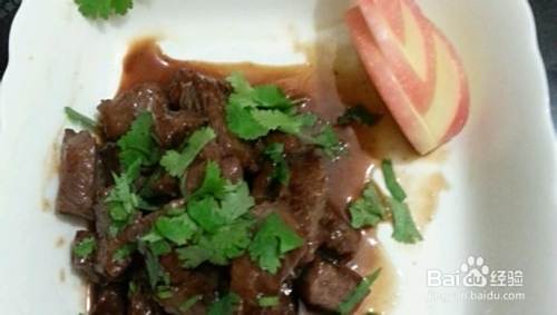 牛肉煎到差不多有七成熟的时候加入调汁,翻均匀即可出锅