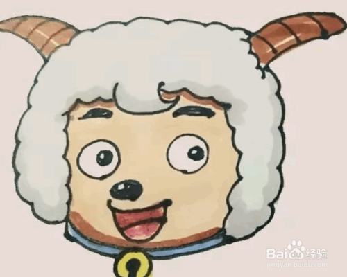在外面,再画两条波浪线,直到羊角的位置。