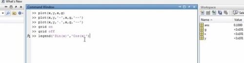 输入legend(“sin(x)”,“cox(x)”)。
