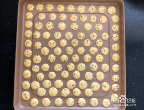 将所有的饼干面糊都做好,便可开始烤饼干,将烤箱事先预热,放入盛放饼干面糊的烤盘,130度,火烤20分钟;