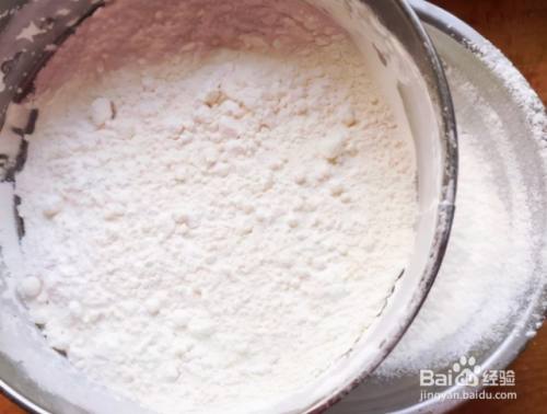 低筋面粉、玉米淀粉和白砂糖先混合,用筛网过滤一遍,将其中的杂质去除,过滤好的粉放入一个大碗中