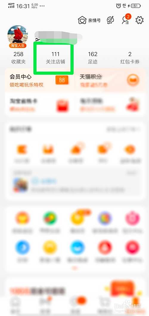2、进入我的淘宝界面,点击界面“关注店铺”选项。